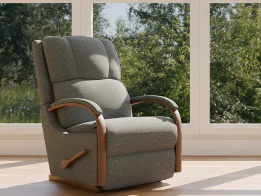 Designed for smaller rooms, the Harbor Town Rocking Recliner gives you the comfort of a recliner with a lighter silhouette and a sleek, stylish frame that's truly transitional. It features a channel-stitched back, a cushioned headrest and decorative bentwood arms topped with pillow-like padding. Simply use the convenient handle on the outside arm to raise the legrest for reading, relaxing or watching TV. When you’re not reclining, it’s a relaxing rocker with a smooth, graceful motion.