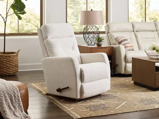 The Lennon Rocking Recliner offers the clean tailored look you love with the comfort and function you want. Size is scaled down but style is cranked up with sleek track arms and topstitching detail. Back, chaise seat and legrest adjust for relaxing. Perfect for Tall scale (5'10" to 6'2").