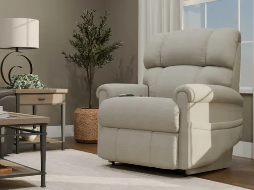 Nothing makes relaxing more uplifting than the Pinnacle Platinum Luxury-Lift® recliner’s easy-going attitude. With the power to sit, stand and recline at the touch of a button and PowerReclineXR® for more relaxing positions, it makes reclining more effortless and relaxing than ever before. A convenient hand-held remote raises and lowers the chair to help you sit or stand securely and easily. With an independently moving back and legrest that lets you choose any combination of reclining positions, including stress-free zero gravity. Pinnacle is plushly-cushioned with a high back, channel-stitched details and full-body chaise reclining comfort and support.