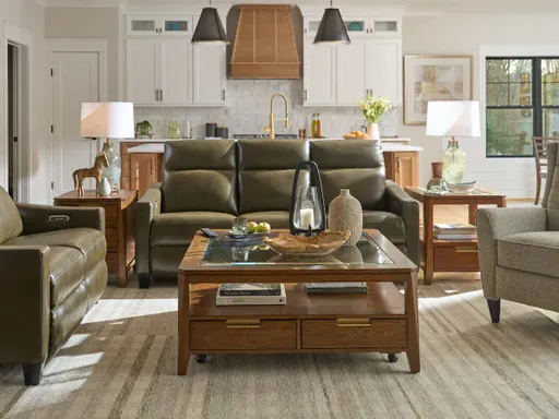 The Acadia Power Reclining Sofa with Headrest exudes a crisp, modern vibe with chunky track arms, a smooth waterfall chaise seat and tall, linear back. The power-tilt headrest and zero gravity recline offer sublime support…adjust, relax and revive.