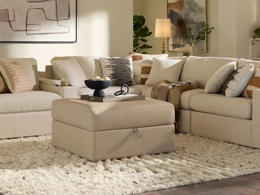 A clean, boxy form and large storage cavity give the Tahoe Ottoman a leg up on all the ways to add style and function to a room. Use it to stretch out, set down a drink, offer a seat, or stash a throw. And, casters make it easy to glide it around!