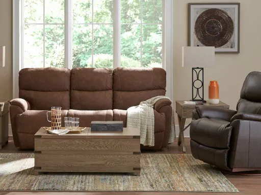 The billowy contours of the Trouper Power Reclining Sofa with Headrest and Lumbar are offset by smooth lines, softly sloped arms and contemporary style. Power controls adjust recline, headrests and lumbar to read, watch TV, or simply relax in luxury!