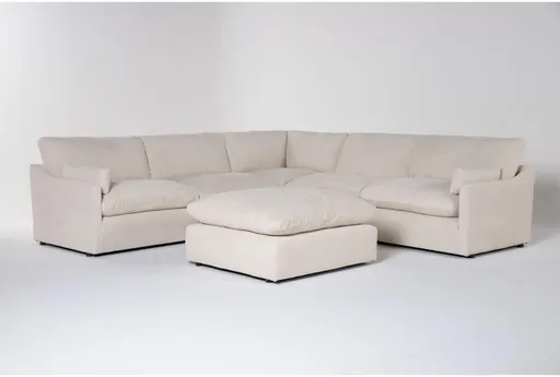 Aaliyah Cream Beige Boucle Fabric 5 Piece 122" Modular L-Shaped Sectional With Ottoman | Reversible | Loose Reversible Back | Furnzy.com - Shop local furniture stores in one place