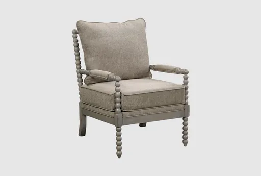 Experience the comfort and style of the Abbott Dolphin Grey Fabric Wood Spindle Armchair with Brushed Grey Finish. Ideal for your living room, this traditional armchair combines a sturdy wood frame with luxurious high performance fabric. The spindle design and neutral greige color make it a timeless addition to any home.