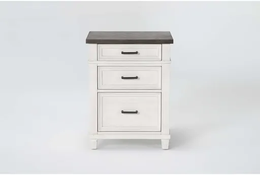 Aberdeen Wood Modular Filing Cabinet brings farmhouse character and practical organization to compact spaces. The two-tone white and natural finish pairs a wire-brushed natural top with a white base for a timeless, slightly distressed look that complements modern farmhouse and transitional decor. Three drawers deliver versatile file and general storage, and the top drawer locks to keep important papers secure. Tapered legs lift the cabinet for a light visual presence while the vertical profile makes this a smart small space solution for entryways, home offices, dorms, or living rooms.