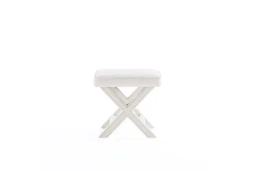 Mid-Century Modern Ottoman Perfect for Living Room and Bedroom Use. * Dimension Measures: 20.47 in. Length, 19.48 in. Height, 20.47 in. Depth * Solid Wood Frame for Durability and Functionality. * Upholstered in Luxurious Velvet. * Stylish X-Crossed Legs. * Leg Height Measures: 16.33 in. * High Quality Piped Cushion with Plush Foam Padding for Comfort and Style. * Delivered to you Fully Assembled! No Assembly Required!