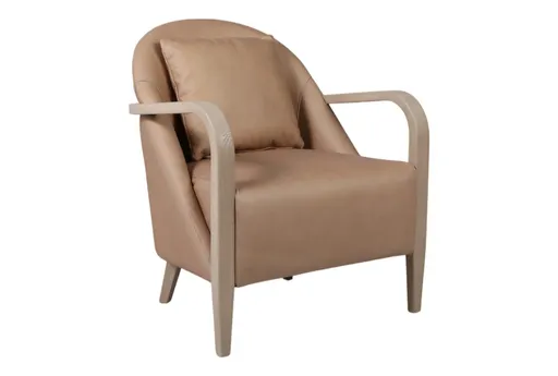 Accent Chair Faux Leather and Wood Curved Wooden Armrests with Cushion for Home Office Bedroom Living Room - 33" Tan | Furnzy.com - Shop local furniture stores in one place