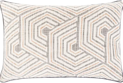 Add a touch of modern style to your living room with this geometric accent pillow. Featuring a striking grey and orange hexagon print, this lumbar pillow offers both comfort and contemporary flair. Made from soft cotton fiber, it is perfect for adding support and a pop of color to any space.