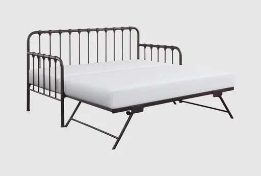 The Adalie Bronze Twin Metal Daybed with Lift-Up Trundle is a stylish and versatile addition to any bedroom. Its industrial design and high-quality metal construction make it both durable and attractive, while the lift-up trundle provides additional sleeping space for guests. Stylish industrial design, Durable metal construction, Convenient lift-up trundle for extra sleeping space.