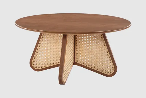 The Adeline Modern Walnut + Cane 38" Round Coffee Table is a stunning addition to any living space. Its modern design and walnut finish create a sophisticated look, while the natural cane accents add a touch of contemporary flair. Crafted from high-quality rubberwood and oak veneer, this coffee table is both stylish and durable.