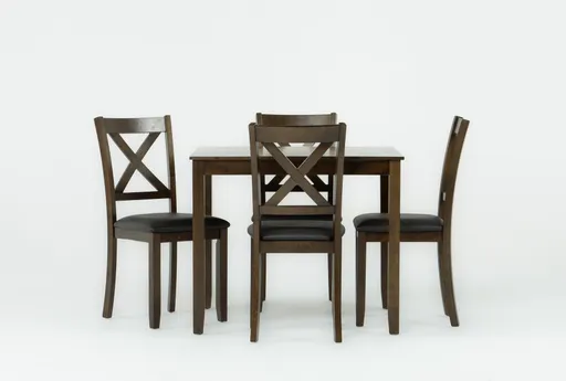 Enhance your dining experience with the Adina Brown Square Wood Kitchen Dining Table with Side Chair Set. This rustic set, featuring a charcoal brown finish, is perfect for your dining room or kitchen. The acacia wood table and matching X back chairs create a cohesive and inviting atmosphere for family and friends.