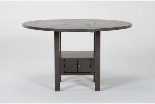Enhance your dining room or kitchen with the Adonis Grey Wood 60" Square to Round Drop Leaf Counter Height Table. This medium grey wood table combines style and functionality with its versatile round to square shape and convenient storage options. The drop leaf design allows you to easily adjust the table size to fit your needs, making it perfect for both intimate gatherings and larger meals.