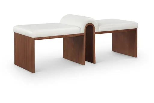The Aeris Cream Vegan Leather Bench with Brown Walnut Finish Legs is a perfect addition to any entryway or bedroom. Its modern design and cream color provide a contemporary and welcoming touch to your space. This bench is both stylish and functional, offering comfortable seating with its vegan leather upholstery and sturdy rubberwood legs.
