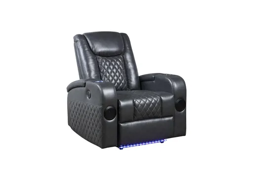Experience the ultimate in relaxation with the Alair Grey Leather Power Recliner. This casual yet stylish recliner features a dark grey hue that complements any living room decor. Equipped with Bluetooth speaker and a cooling cupholder, it enhances both comfort and convenience.