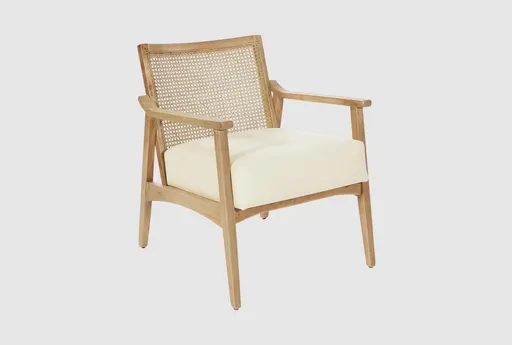 Experience the casual charm of the Alania White Fabric Linen Coastal Wash Arm Chair. This lounge chair brings a soft comfort to your living room with its linen-colored fabric and coastal wash finish. Perfect for relaxing in style.