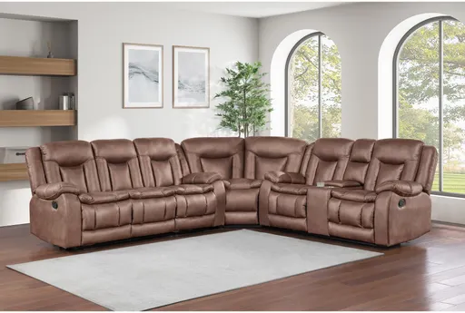 Introducing the Alaya Brown 3 Piece Sectional, perfect for adding comfort and style to your living room. This casual sectional features a soft fabric upholstery in a rich brown color, making it a versatile addition to any home decor. Designed with pillow top arms and padded arms, it ensures maximum relaxation for you and your guests.