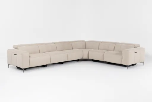 Alessa II Stone Fabric 127" 6 Piece Power Zero Gravity Reclining Sectional With 2 Armless Chairs | Furnzy.com - Shop local furniture stores in one place