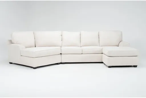 Alessandro II Beige Porcelain Chenille Fabric 2 Piece Sectional With Right Arm Facing Sofa Chaise & Left Arm Facing Oversized Chair & A Half offers roomy, casual seating designed for relaxed family living. Upholstered in porcelain beige chenille fabric (100% polyester), it mixes soft texture with a neutral palette that makes styling simple. Deep-seated foam-filled cushions, loose back pillows and a low block base create a comfortable, supportive spot for lounging, while clean track arms keep the silhouette approachable and modern.