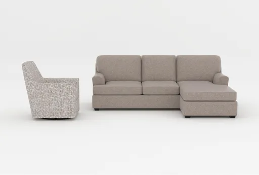 Alessandro II Taupe Chenille Fabric Queen Sleeper Sofa With Reversible Chaise|Belinha II Oyster Beige Grey Fabric Swivel Glider Accent Armchair | Furnzy.com - Shop local furniture stores in one place