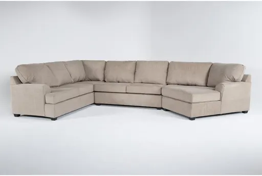 Alessandro Mocha Beige Fabric 170" 3 Piece Oversized U-Shaped Sectional with Right Arm Facing Oversized Chair and A Half brings generous, family-size seating to a casual living room with a modern-leaning silhouette. Upholstered in mocha beige 100% polyester chenille, the surface offers a soft, textured look that wears well for everyday life. Deep, loose seat and back cushions with foam fill create a relaxed, supportive place for lounging, movie nights and conversation. Track arms and tapered alder legs keep the profile grounded yet visually light, while the oversized U-shaped, three-piece layout adapts easily to corner or center placement in a great room.
