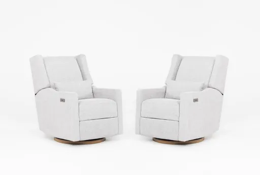 3. Aletta Grey 39" Nursery Power Swivel Glider Recliner Set Of 2