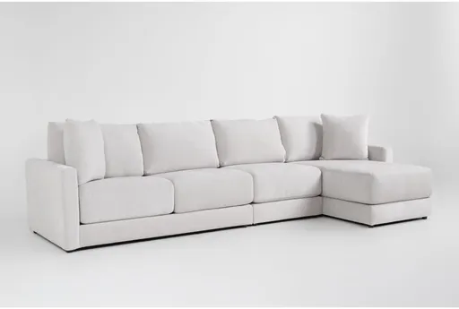 The Alicia Greige Grey Chenille 138" 3 Piece Sectional with Right Arm Facing Chaise is perfect for adding comfort and style to your living room. This versatile piece offers a reversible design, making it easy to fit any space. Upholstered in soft chenille fabric, it provides a cozy and inviting seating experience.