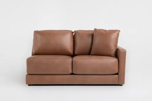 Comfort and style coexist beautifully in our Alicia faux leather right arm facing loveseat, which is made exclusively by Living Spaces. While clean lines establish a timeless modern look, plush design provides irresistible lounging. At 40" deep, the seats are luxurious and include extra thick high-density foam for an especially supportive experience. The cushions are also loose and reversible, ensuring enhanced longevity. With faux leather, you can enjoy soft, chic upholstery. You'll love the grounded color palette, which favors earth tones.