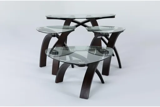 If you gravitate towards furniture that could function as art, our Allure occasional collection will impress and excite you. Clear glass looks through to the sculptural bases, which are composed of curved hardwood and veneer legs in a smooth hazelnut finish. Incorporate these tables in your interior, and let them serve as foundations for conversation.