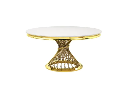 Meet the Alon Engineered Marble Dining Table With Mirrored Gold Finish – a design fit for the home of your dreams. Get free shipping and save more!
