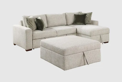 The Alonza 3 Piece Sectional with Reversible Chaise Pull-Out Bed Hidden Storage And Ottoman Click Motion Back brings flexible comfort to the living room with seating for family and easy overnight options. A plywood frame with reinforced joinery provides durable support while 100% polyester upholstery offers a soft, easy-care surface. The reversible chaise includes hidden storage and a pull-out bed, and the matching ottoman expands seating or serves as a footrest. Click motion back lets you adjust support for different activities, making this sectional a practical, versatile choice for everyday living.