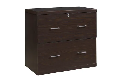 Organize your office space with the Alphie Modern Brown 30" File Cabinet. Designed with a modern aesthetic, this cabinet provides ample storage for all your important documents. Its sturdy construction ensures durability while blending seamlessly into any office setting. Features two spacious drawers for versatile storage needs. Constructed from particle board, MDF, and metal for long-lasting use. Locking mechanism for added security and peace of mind.