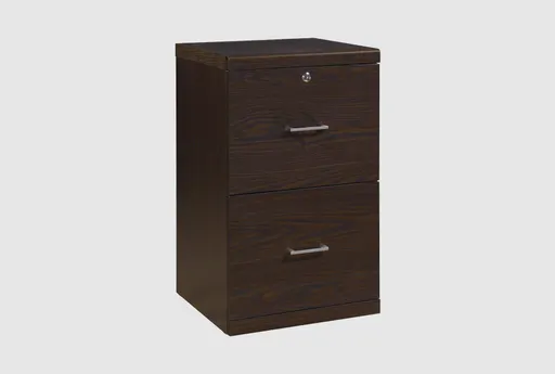 Enhance your office organization with the Alphie Modern Brown 17" File Cabinet. This espresso-colored cabinet is designed to complement modern spaces, providing practical file storage with a sleek finish. Constructed from durable materials including particle board, MDF, and metal, it ensures long-lasting use.