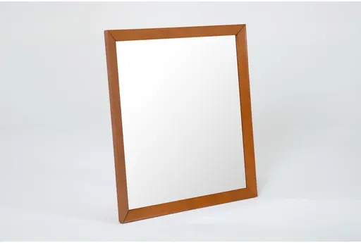 The Alton Cherry II Natural Brown Wood 48" Mirror brings a touch of mid-century modern charm to your bedroom. Its square shape and cherry color add a warm and inviting feel to any space. Made with okoume veneers and solid rubberwood, this mirror combines durability with a stylish design.