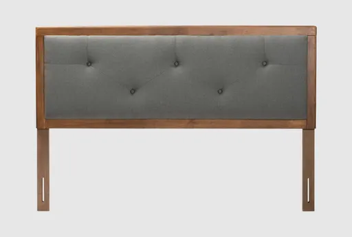 Enhance your bedroom with the Alyvia King Dark Grey Upholstered and Walnut Brown Finish Wood Headboard. This modern headboard combines a sophisticated dark grey fabric with a warm walnut brown finish, creating a inviting focal point for your space. The tufted design adds a touch of texture and visual interest.