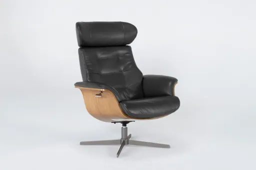 Introducing the Amala Dark Grey Leather Reclining Swivel Arm Chair with Adjustable Headrest, a perfect blend of style and comfort. This mid-century modern armchair is designed to enhance your reading and lounging experience. Crafted from high-quality cow leather, it offers a firm comfort level and features a high back and tufted design for added support.