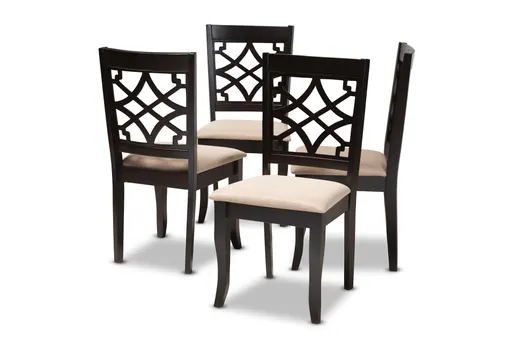 Enhance your dining experience with the Amala S Fabric Uph Espresso Brown Finished Wood Dining Chair Set Of 4. These modern chairs are designed to provide comfort and style, making them perfect for any dining room. Upholstered in a fabric linen blend, these chairs offer a soft neutral tone that complements any decor.