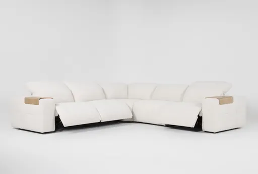 Experience unparalleled comfort and style with the Amallo Ivory 5 Piece Power Reclining Sectional. This modern sectional features adjustable headrests for personalized relaxation. Upholstered in 100% polyester fabric, it boasts a soft and durable surface perfect for your living room.