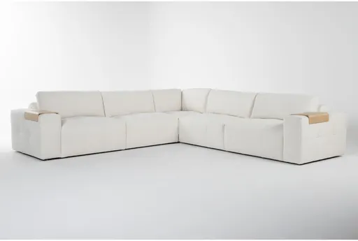 Amallo is a modern modular sectional designed to anchor large living room setups with a clean, symmetrical silhouette and tufted seat details. Upholstered in soft ivory fabric, the 141 inch five-piece l-shaped arrangement pairs deep-seated cushions with track arms to create a comfortable profile that invites lounging and conversation. Pine frame accents and a reinforced internal frame provide structural integrity while dacron wrapped foam in the cushions balances plush comfort with lasting support.