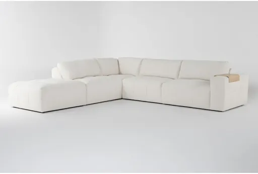The Amallo Ivory White Fabric 141" 5 Piece Modular L-Shaped Sectional with Left Arm Facing Bumper Chaise is the perfect addition to any modern living room. Its mellow ivory color and tufted design create a comfortable and stylish seating arrangement. With a symmetrical orientation and modular configuration, this sectional offers versatility and ease in arranging your space.