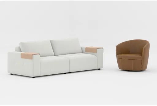 Amallo Ivory White Fabric 108" 2 Piece Sofa | Santiago Vintage Caramel Leather Swivel Barrel Club Chair | Modular | Tufted | Furnzy.com - Shop local furniture stores in one place