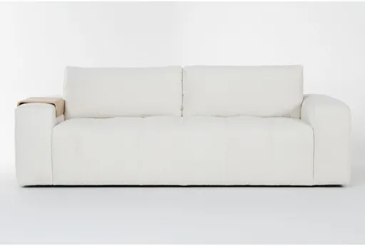Introducing the Amallo Ivory White Fabric 102" Sofa with Tray, a perfect blend of comfort and modern design. This mellow ivory sofa is upholstered in soft fabric, ensuring a cozy seating experience. Its tufted details and foam cushions add a touch of sophistication to your living room.