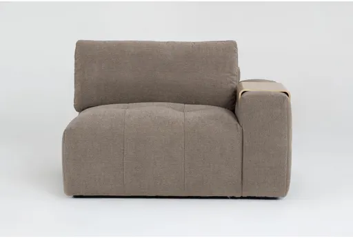 Enjoy the Amallo oversized right arm facing chair's luxuriously plush design that features deep, thick cushions with a seat that includes supportive foam encased in blissful down blend, plus a wide track arm silhouette for a look and feel that is utterly irresistible. Tailored tufting that carries around the frame allows you to float your piece anywhere in your living room. With soft, durable, easy-to-clean polyester upholstery and a bentwood tray to rest drinks and accessories, you've got it made here.