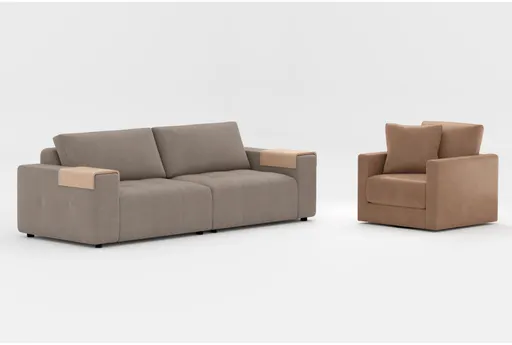 * Features include tufted detailing, swivel chair, and a 2-piece modular setup