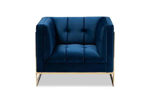 Ambra Glam and Luxe Royal Blue Velvet Fabric Upholstered and Button Tufted Armchair with Gold-Tone Frame | Furnzy.com - Shop local furniture stores in one place