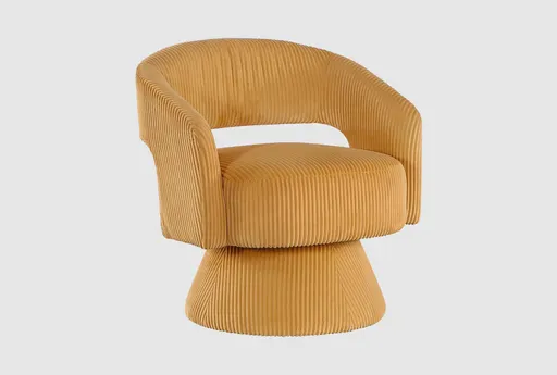 Add a touch of modern flair to your living room with the Ameillia Yellow 27" Corduroy Fabric Swivel Chair. Its vibrant yellow color and plush corduroy fabric create a comfortable and stylish seating option. The swivel feature and curved design make it both functional and visually appealing.