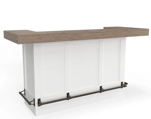 Introducing the Amery White + Brown Multicolor Wood Two Tone 78" Bar with Wine Storage. This stylish bar features a cotton finish and is made from durable poplar wood. Its rectangular shape and practical design make it perfect for any dining room or kitchen.