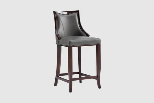 The Amory Grey Faux Leather 27" Barstool offers comfortable, supportive seating for your dining room with a curved, armless seat and a built-in footrest. Upholstered in grey faux leather and padded for long sits, it stands on tapered beech wood legs with a stretcher that adds stability. Its compact profile and traditional styling make it a practical choice for kitchen islands and dinettes.