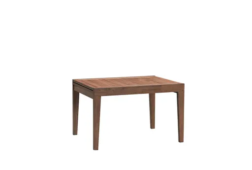 MDF core with walnut veneer creates a stable tabletop that highlights warm walnut grain.