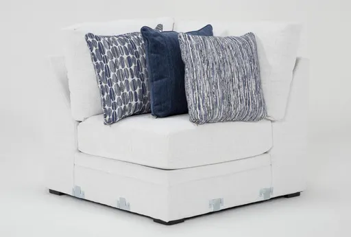Designed and made exclusively by Living Spaces with comfort, style and practicality in mind, our Anacapa corner checks all the boxes. Modular in nature, the collection includes small and large configurations to fit your space perfectly. Deep and plush seating is hard to resist, while accent pillows add all that jazz and pizzazz with a timeless blue palette you'll love. Best of all, the high-performance, solution-dyed polyester cover is durable, bleach cleanable and fade resistant.