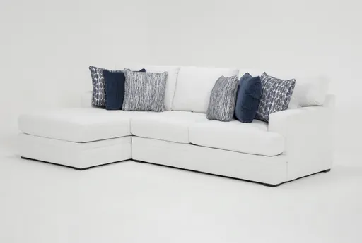 Designed and made exclusively by Living Spaces with comfort, style and practicality in mind, our Anacapa full sleeper sectional checks all the boxes. Modular in nature, you'll find small and large configurations to fit your space perfectly. Deep and plush seating is hard to resist, while accent pillows add all that jazz and pizzazz with a timeless blue palette you'll love. Best of all, the high-performance, solution-dyed polyester cover is durable, bleach cleanable and fade resistant.